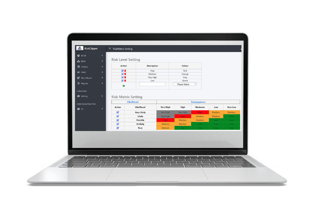 Aspired to be an operational risk management tool, RiskClipper™ G7 has the following modules to enable risk management activities to be carried out effectively. A brief description of their functionality are described below:
